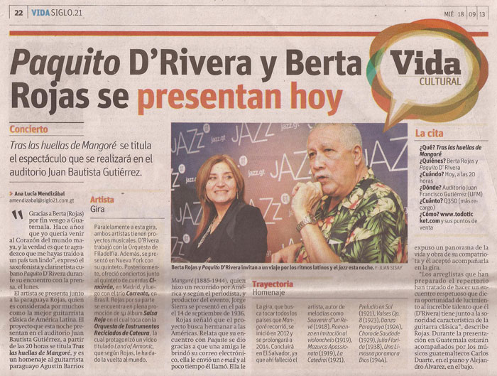 Paquito D’Rivera and Berta Rojas to present in Guatemala